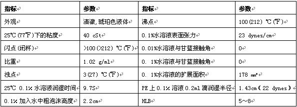 SP 5688 产品的功能和特点: SP 5688农用有机硅助剂是一种新型的基于烷氧基改性三硅氧烷,具有高效经济的特点。可以润湿任何表面,使药液中的有效成分迅速渗透进靶体缝隙和表面。专门应用于高扩展、高渗透农药的开发、生产,按照一定比例加到农药剂型或与农药水溶液直接桶混使用可以显著改善农药药液的有效吸收,提高渗透利用率,减少滴落流失,提高有效滞留量和持效时间,能大幅度增加农药的覆盖面积和农药用量。是氮酮、噻酮的理想替代物,是目前最优良、环保的渗透增效剂。 产品特点: ◆ PH值范围5~10应用,耐酸碱稳定性好,溶于水不混浊,通用各种农药,肥料。尤其水剂专用。 ◆ 显著降低喷雾液的表面张力,降低喷雾液和生物靶标的接触角,提高药液在靶标生物上的润湿及粘附能力。0.1%的SP 5688剂量就能把水的表面张力从72达因降到21达因。有效增加了润湿速度和渗透性能。 ◆ 增大了喷雾液在靶标作物上的展扩面积。特殊的疏水性分子结构和与水分子分子量的较大差异,使溶液的先导边缘很易铺展,而获得了优异的扩展性能,相比传统的增效剂提高了1~2个数量级。 ◆ 提高耐雨水冲刷能力,促进药液快速吸收,尤其是内吸型药剂的气孔渗透,降低药剂的光解作用和挥发,能够减少雨季重复喷雾的次数。从而使农药的利用率提高3~20倍。 ◆ 应用范围宽广,广泛的应用面和良好的兼容亲和性,可与绝大部分农药剂型配伍使用,与各类表面活性剂体系相容。 ◆ 低泡沫特性。 ◆ 安全、环保、节能,推动了低容量喷雾的发展。 产品理化指标: